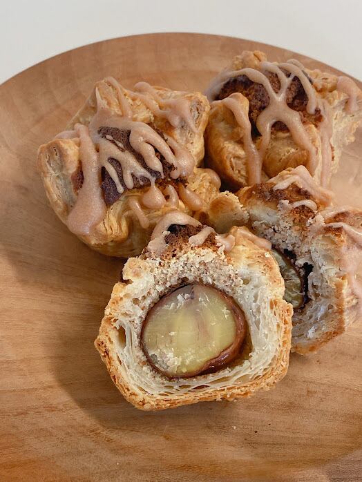 自家製の栗の渋皮煮と、マロンクリーム入りのアーモンドクリームが入ったマロンパイです。